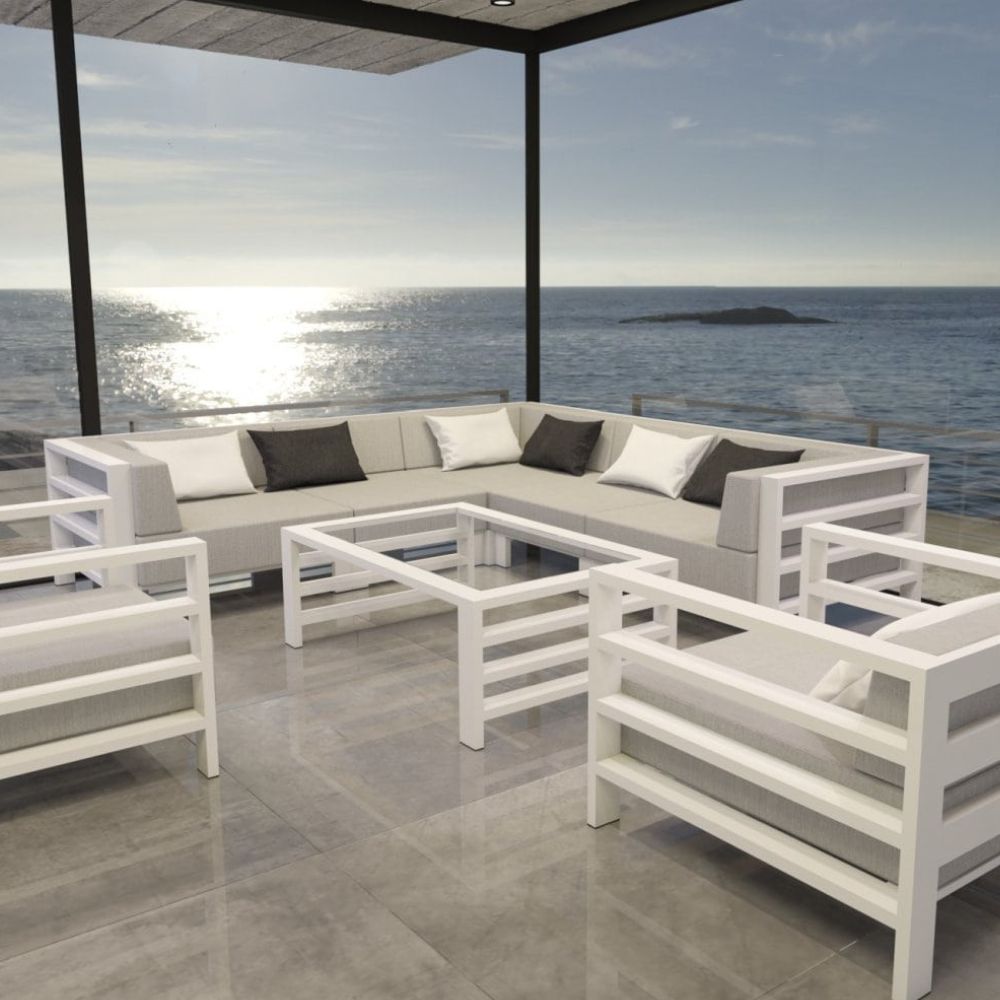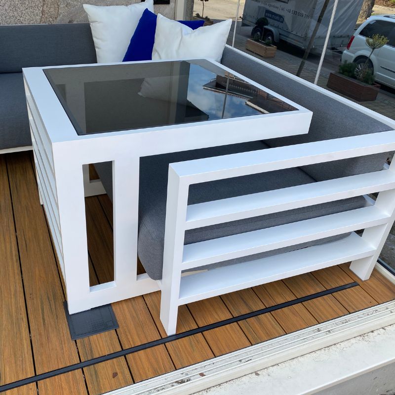 Bo meble modułowe personalizujemy: dobierasz tkaninę (kolekcje Sunbrella), kolor, układ, a także dochodzą koszty transportu/montażu.