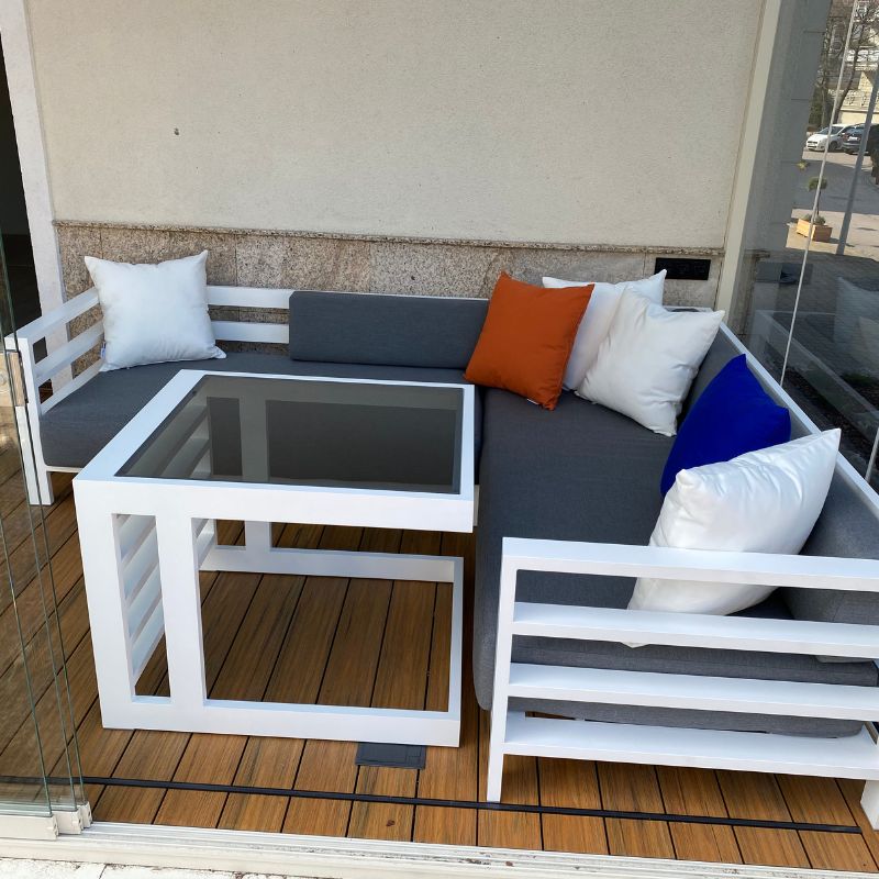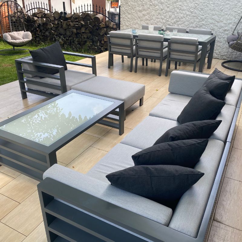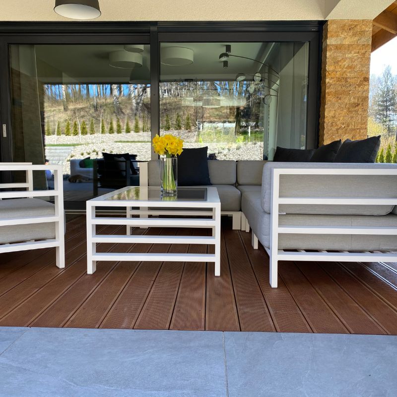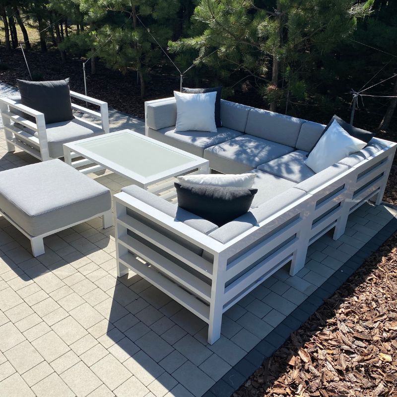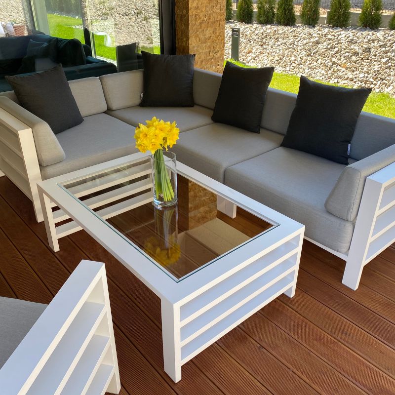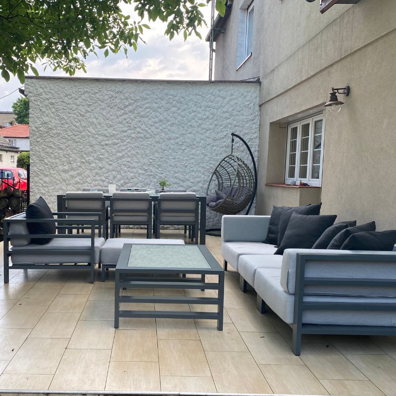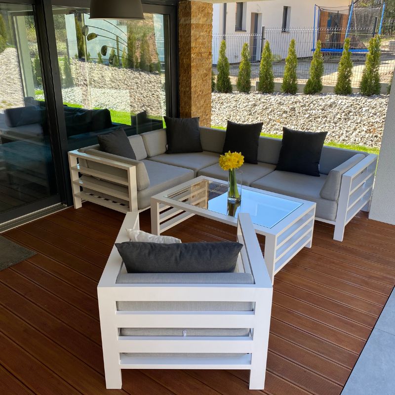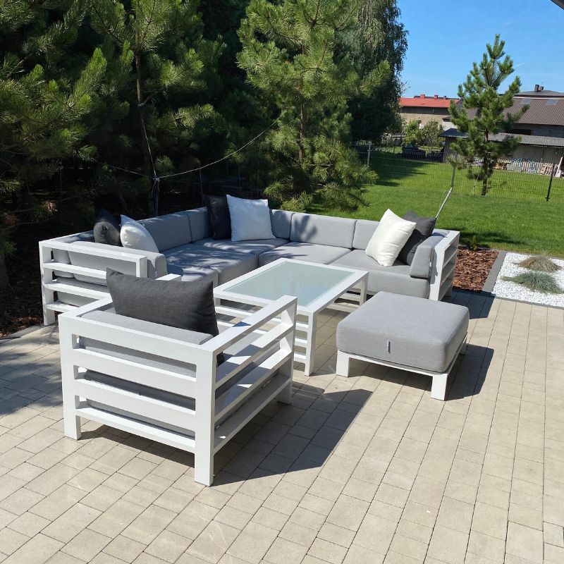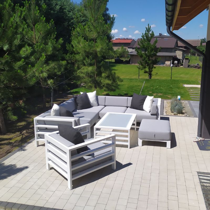 Zestawy gotowe to sprawdzone konfiguracje. Natomiast zestawy modułowe składasz z poszczególnych elementów (moduły wewnętrzne, narożniki, pufy, stoły), aby idealnie dopasować wymiary i funkcję do tarasu.