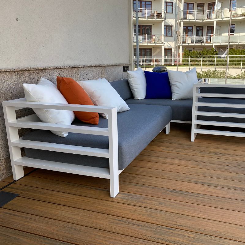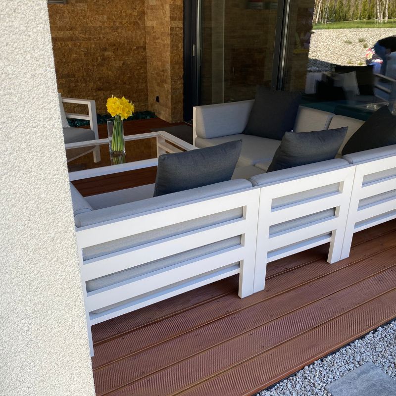 Masz meble tarasowe, które potrzebują odświeżenia? Uszyjemy poduszki z tkaniny Sunbrella w dowolnych wymiarach.