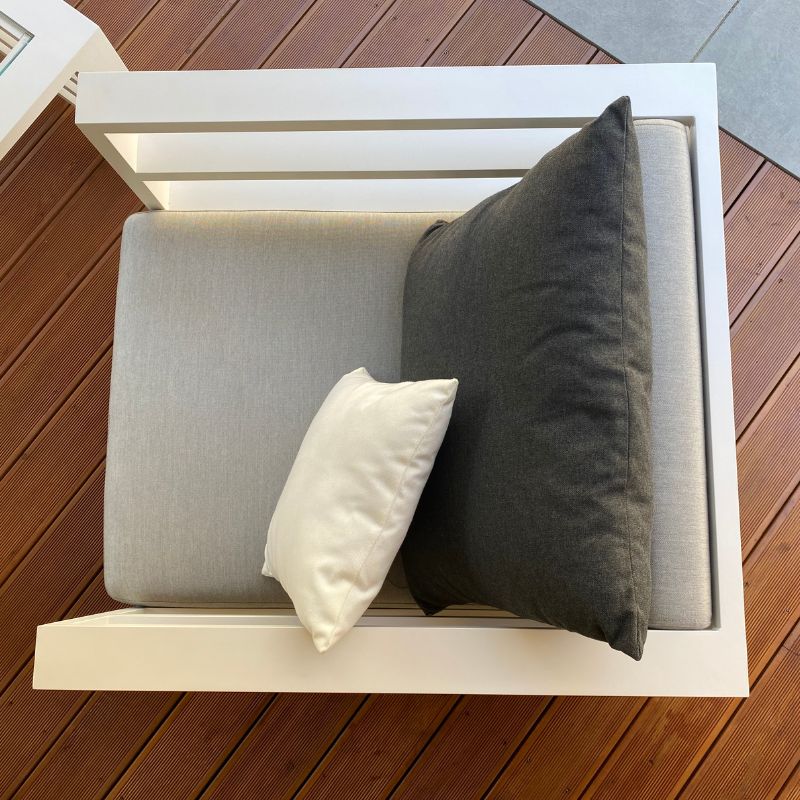 Nasze meble pokrywamy tkaninami najwyższej jakości marki Sunbrella®. Sam możesz wybrać tkaninę na poduszki siedziskowe, dekoracyjne i pokrowce oraz kolor stelaża (wg palety RAL Classic).
