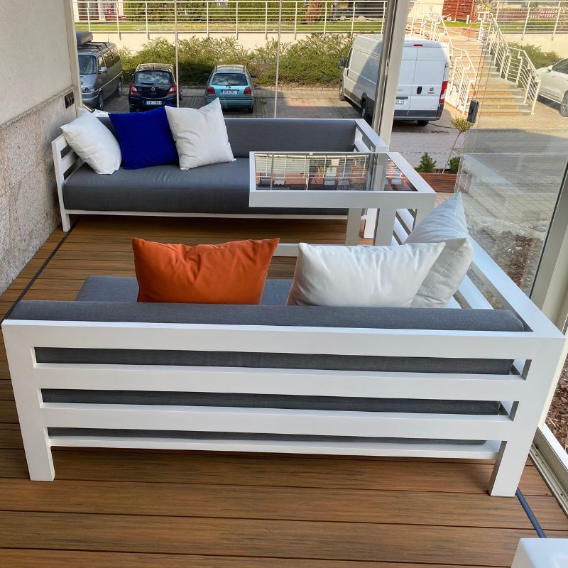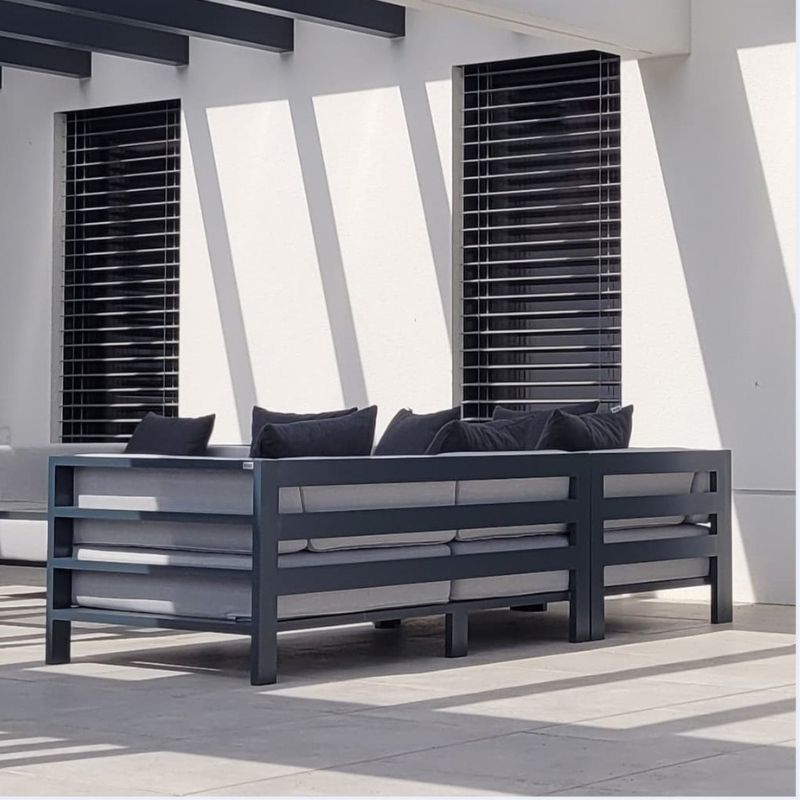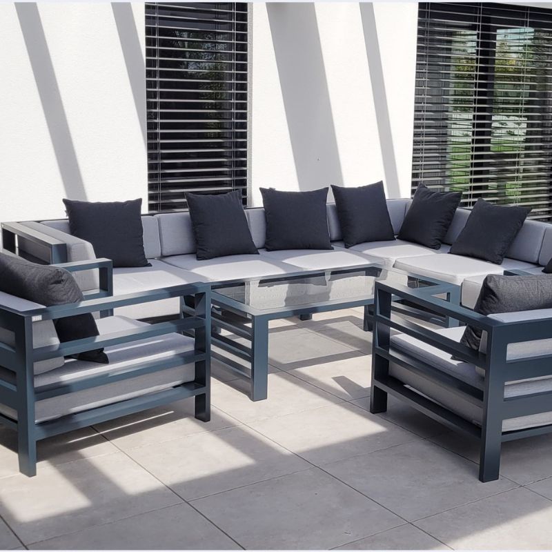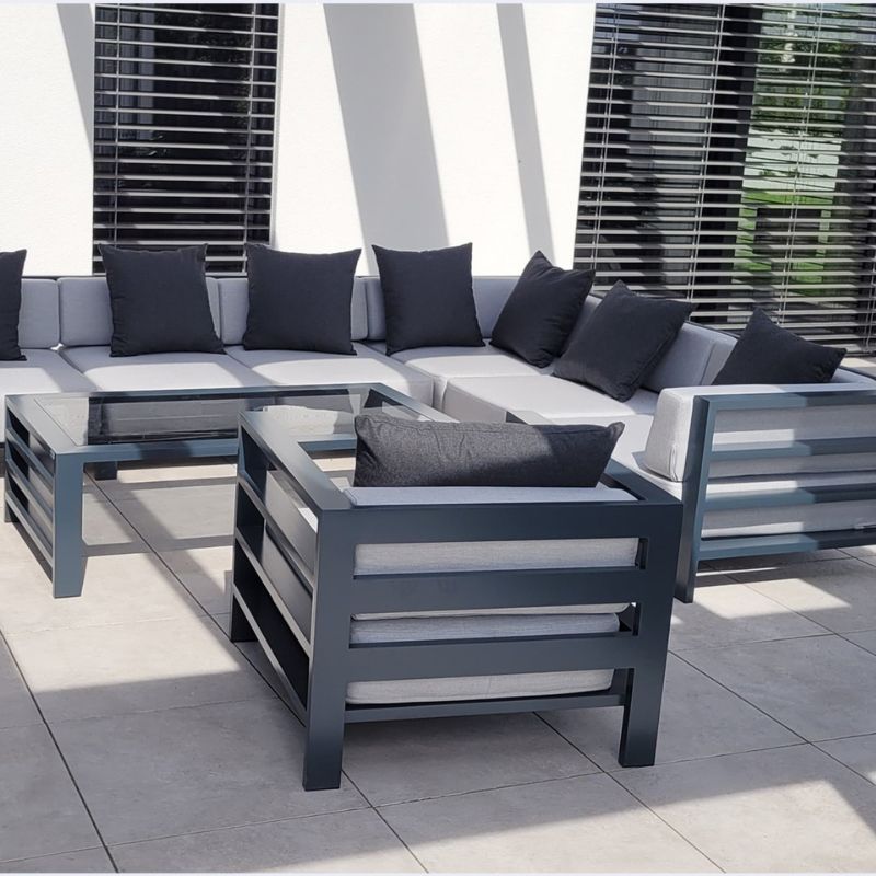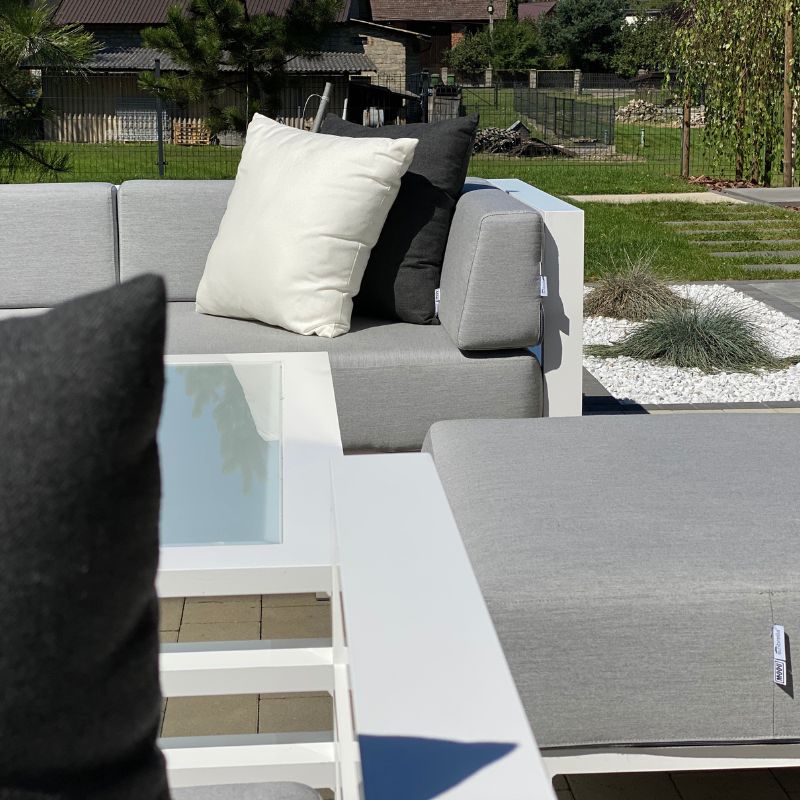 Meble ogrodowe z linii Arucas możesz dowolnie spersonalizować. Czyli dostosować ją do indywidualnych upodobań, stylu i wielkości swojego ogrodu/tarasu/ balkonu, wybierając odpowiednią liczbę modułów, jak i pozostałe elementy: kolor stelaża, grubość pianki i tkaninę oraz rodzaj blatu.