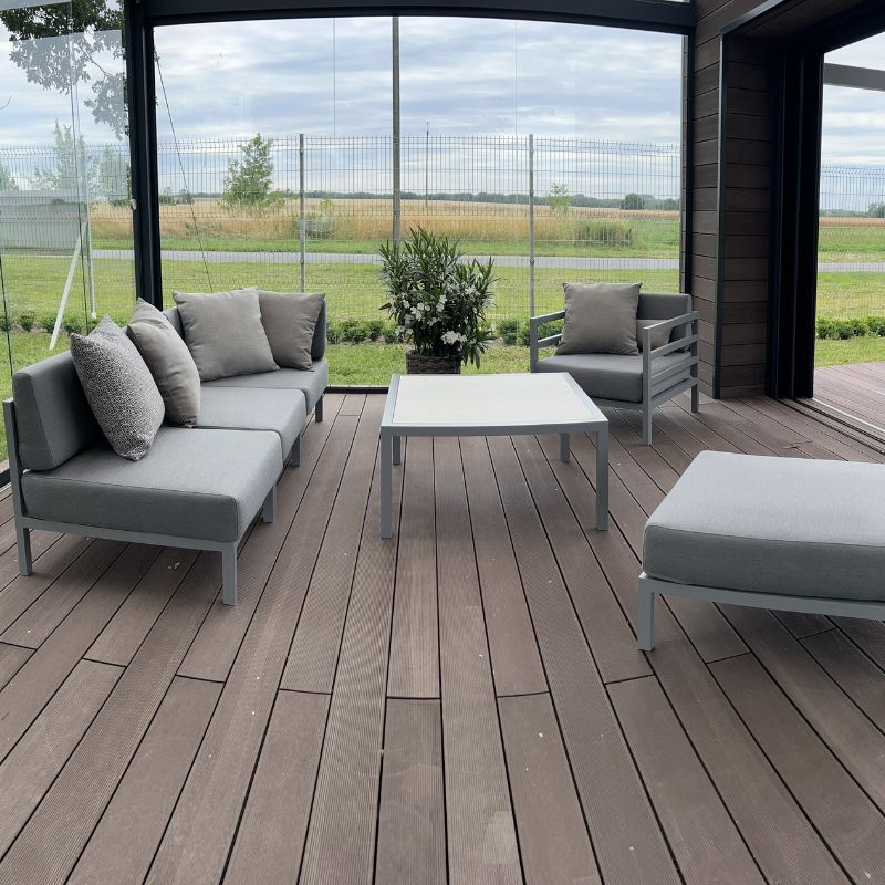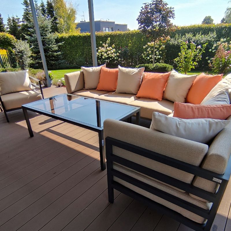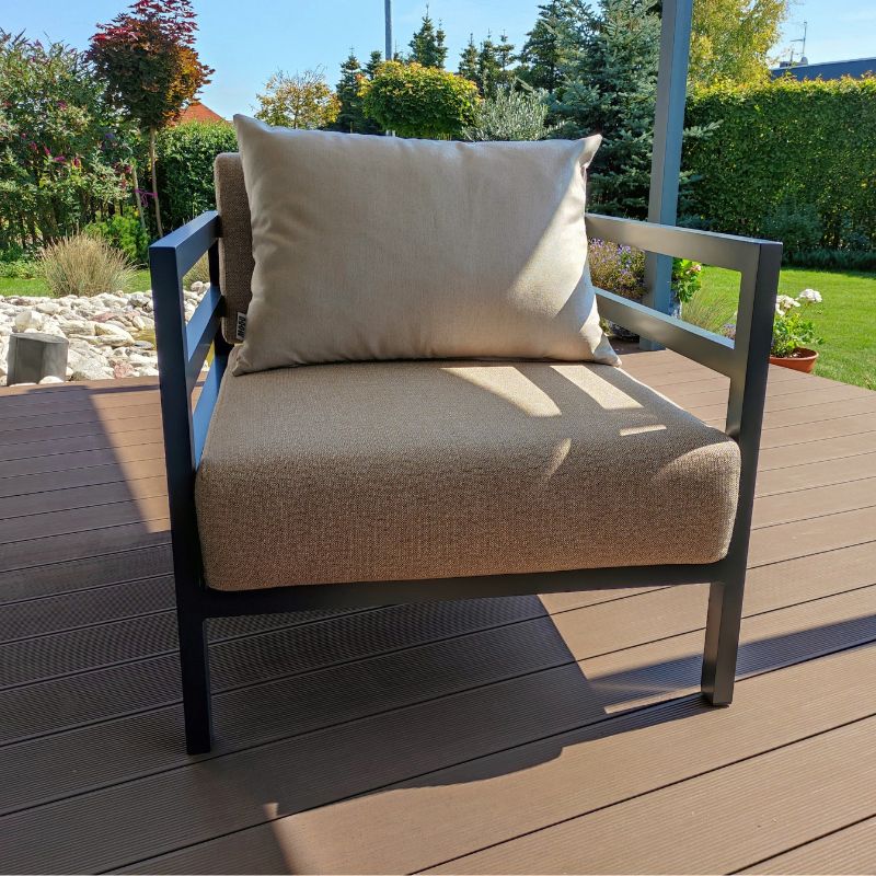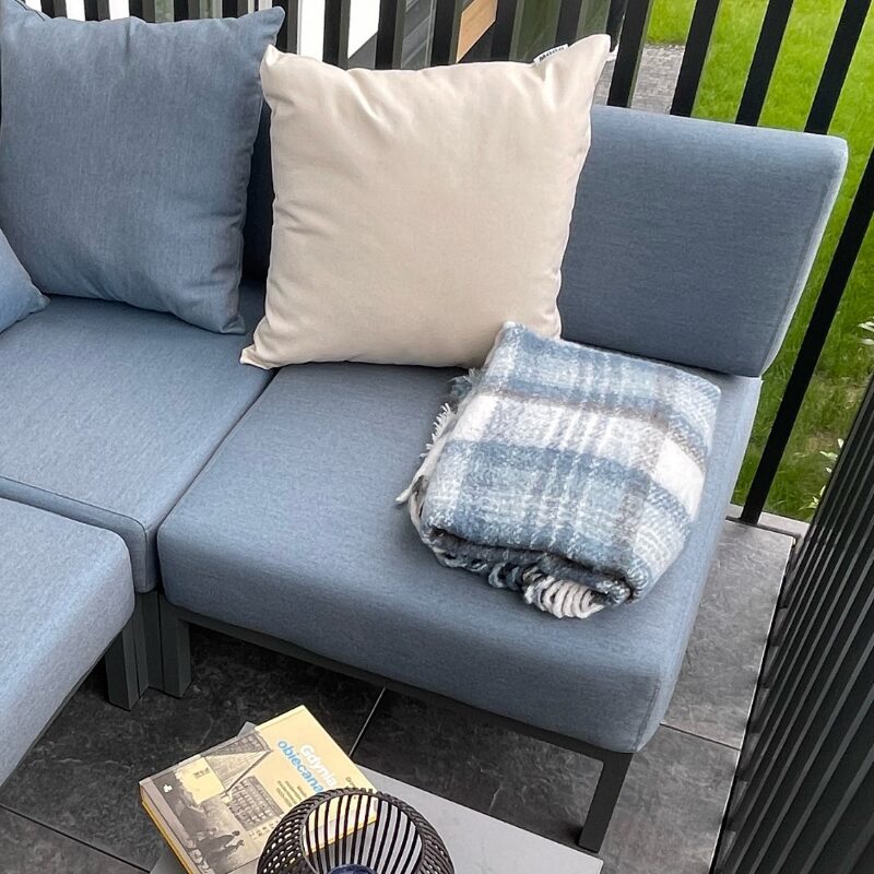 Tkaniny obiciowe Sunbrella® dodają piękna i charakteru w każdym wnętrzu. Są tkane wyłącznie z włókien akrylowch, przędzy barwionej w masie, co gwarantuje odporność kolorów na promienie UV. Dodatkowe plamoodporne wykończenie zapewnia, że są niezwykle łatwe w czyszczeniu.