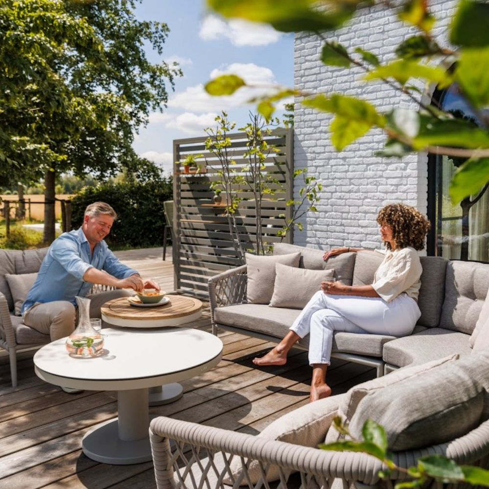 Zestawy gotowe to sprawdzone konfiguracje. Natomiast zestawy modułowe składasz z poszczególnych elementów (moduły wewnętrzne, narożniki, pufy, stoły), aby idealnie dopasować wymiary i funkcję do tarasu.