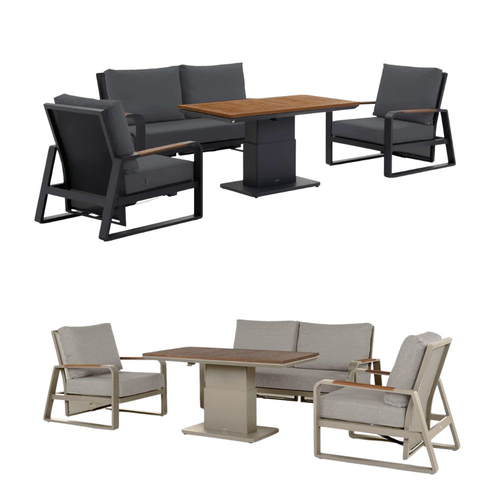 Zestawy gotowe to sprawdzone konfiguracje. Natomiast zestawy modułowe składasz z poszczególnych elementów (moduły wewnętrzne, narożniki, pufy, stoły), aby idealnie dopasować wymiary i funkcję do tarasu.